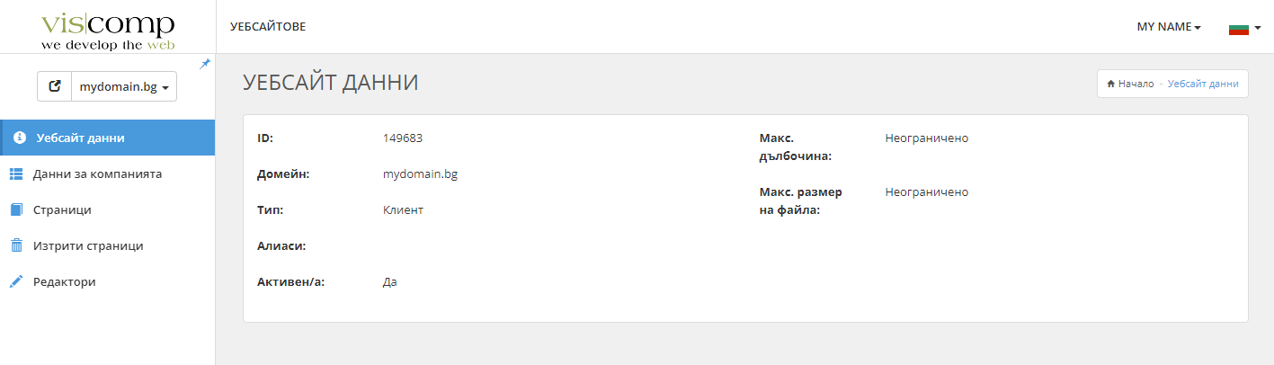 В раздела Уебсайт данни можем да получим основна информация за нашия уебсайт в CMS4.