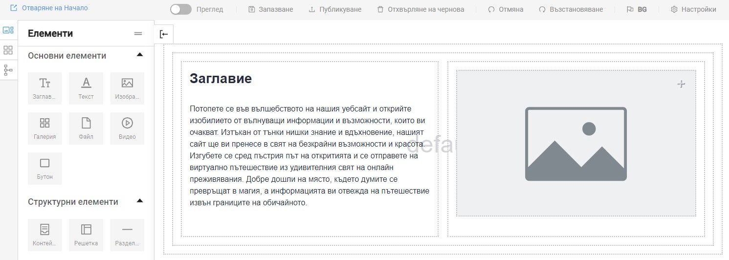 В тези колони можем да поставим какъвто елемент ни е нужен – текст, заглавие, изображение и др.