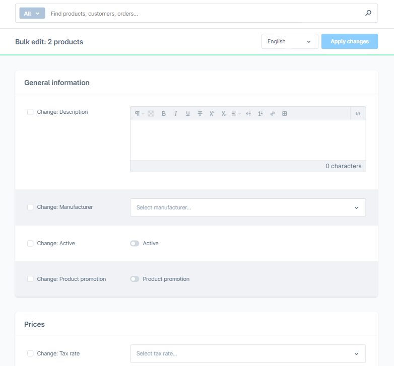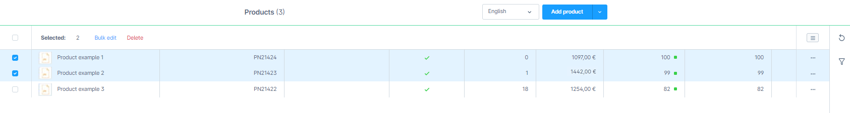 Bulk edit provides an easy and fast way to change multiple products simultaneously.