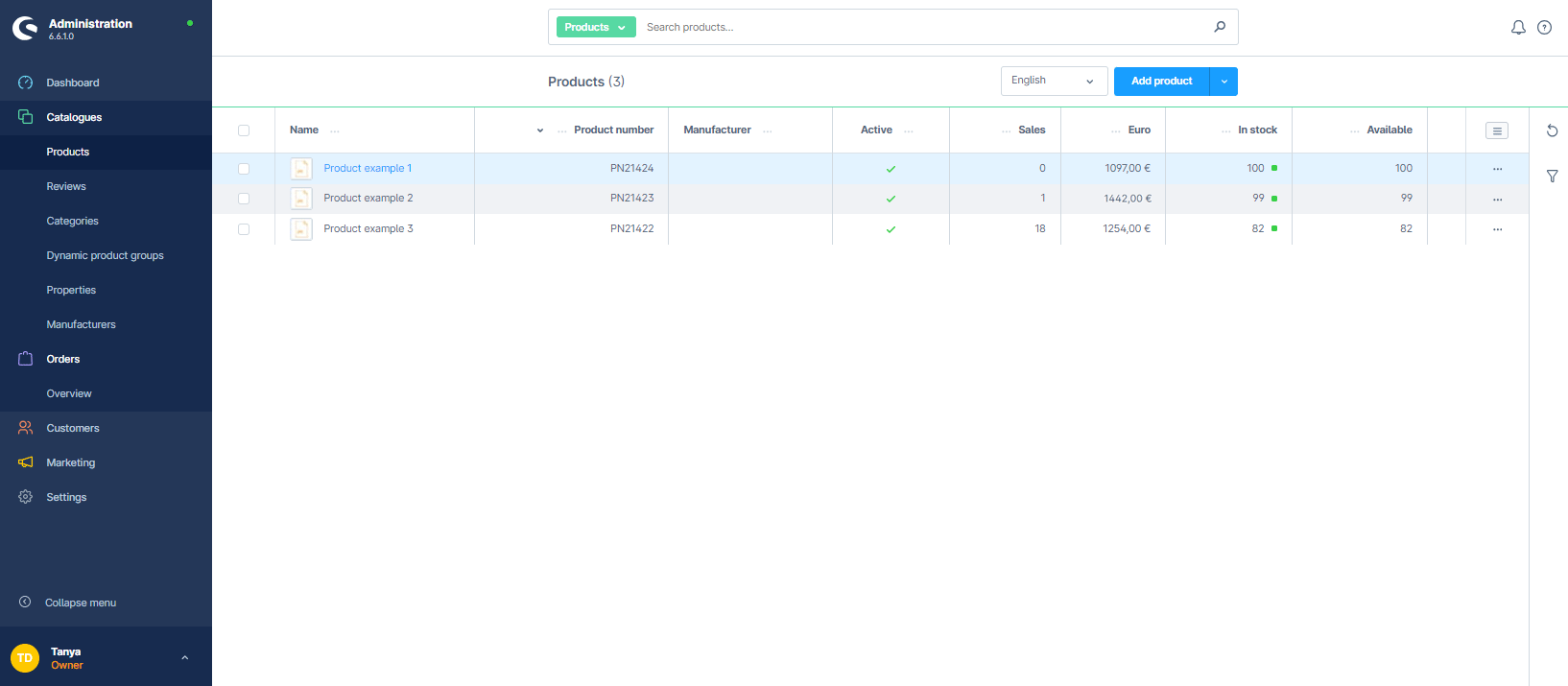From the navigation on the left side of the screen, select: Catalogues > Products.