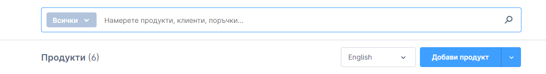 За да се добави нов продукт е необходимо да се избере бутона Добави продукт, той се намира непосредствено над списъка с всички продукти, достъпен от страницата: Каталози > Продукти