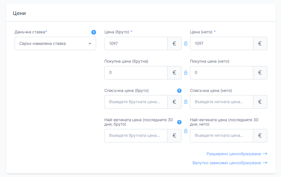 Цена (нето) - нетната цена без данъци.