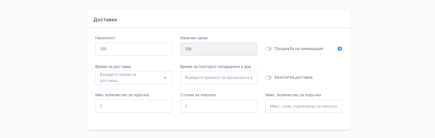 Наличност - тук можете да се попълни колко единици от продукта са налични в момента. След като статусът на поръчката е завършен, наличността се намалява.